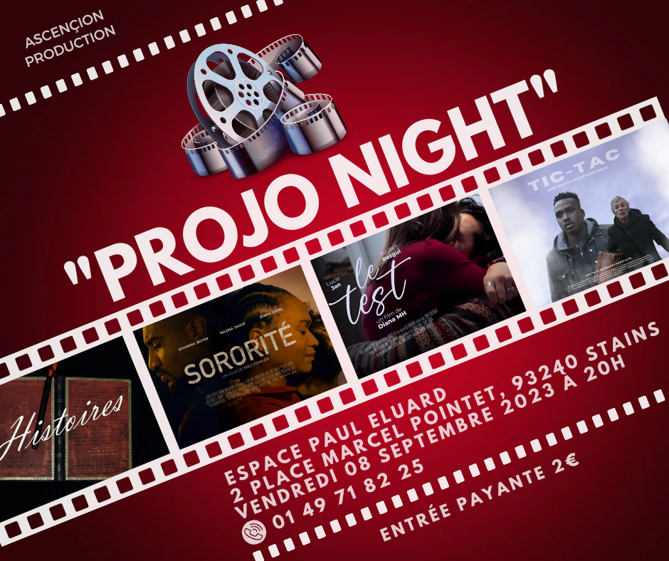 "PROJO NIGHT" c'est 5 courts métrages de réalisateurs talentueux avec des thématiques diverses et variées propice à l'échange dans une salle de 500 places. C'est bien plus qu'une simple projection, c'est une soirée propice au réseautage, aux échanges avec les réalisateurs mais aussi avec d'autres acteurs du monde du cinéma et à la création d'opportunités.